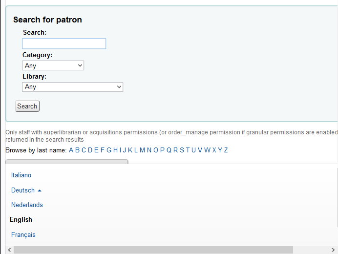 Created attachment 62626 [details] [review] Bug 13835: Popup with searches: results hidden by language menu in footer Language menus in pop up windows are not necessary and can hide the contents (especially search results) on a narrow screen. For an example, see screenshot in comment #3 This patch allows to mark pop p menus not to display the language footer. To test: - Reproduce issue from comment #3 - Apply patch - Try to reproduce issue from comment #3 -> language menu should no longer display - Verify that language menu is suppresed in 'Add to ist' as well (from catalog search results, select an item, Add to:...) Note: There will be more pop-ups with unwnated language selector. That can be resolved in follow up bugs. Followed test plan which worked as intended Signed-off-by: Alex Buckley <alexbuckley@catalyst.net.nz> Signed-off-by: Jonathan Druart <jonathan.druart@bugs.koha-community.org>