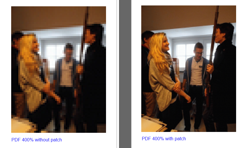 Created attachment 37525 [details] Compare PDF with downsampled image (without patch) with PDF internally scaled image (with patch) The problem is that the image is downsampled to a very small size before it ist inserted into the PDF file. The downscaling should be done inside PDF. See screenshots from PDF, image height 67pt, displayed in Adobe Reader at 400%. Patch follows.