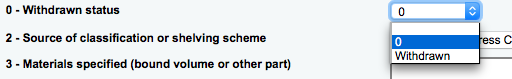 Created attachment 38490 [details] withdrawn cataloging with the 0 value I get a 0 in my withdrawn pull down when cataloging now ...