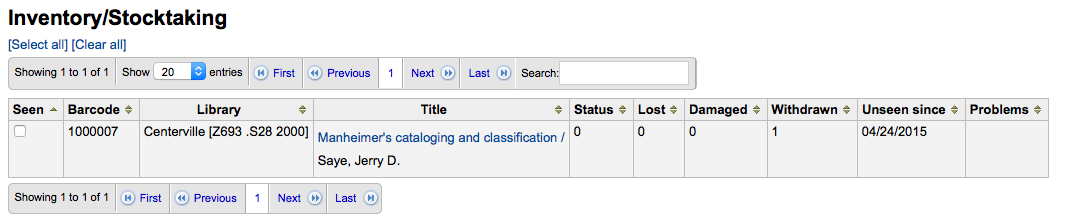 Created attachment 38485 [details] [review] Bug 14061: Fix broken mapping for not withdrawn items. TEST PLAN --------- 1) Run inventory on a filtered set such that the selected barcode is not withdrawn. -- the Withdrawn column displays '0'. 2) Apply patch 3) Rerun -- the Withdrawn column displays '' (as expected) 4) run koha qa test tools