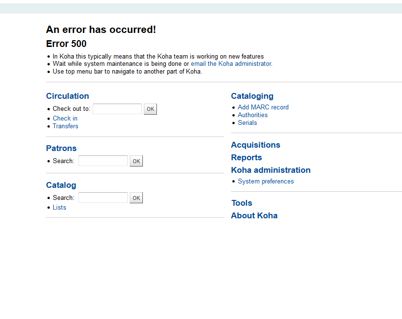 If you look in your intranet error logs, you should be able to find the root cause. From the sound of it, I'm guessing that it's a SQL error. Worth checking to see if MySQL is in strict mode. Koha and MySQL in strict mode don't get along very well.
