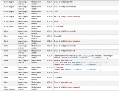 French academic libraries have the same problems as those indicated by Marcel and Joy. Also in search results opac : it is indicated that the item is 'On loan' with the flag at '1' in items.restricted. (see /home/koha/src/C4/XSLT.pm). It's not consistent. The confusion between notforloan and restricted is also seen in the table of items (screen detail.pl) because Koha displays two contradictory information (Notforloan => On loan and Restricticed => not communicable). The notforloan column in this items table display errors which requires us to do some jquery customization to harmonize the information and hide the inconsistencies.(cf attachments) The differences between notforlan and a 'item trap' (withdrawn, lost, restricted, damaged): -a "item trap" is stronger than notforloan in terms of display.Koha displays the trap and not notforloan -on the return of a item, the trap is displayed , not notforloan -notforloan is sustainable information not necessarily the value of the trap