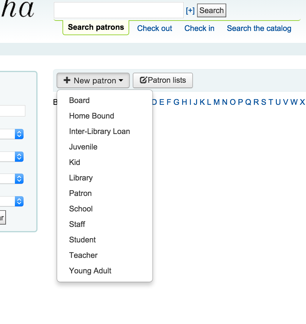 Steps to reproduce: - On master (and 3.20 at least) - On the checkout form, perform a search that (a) returns more than one result (b) returns zero results - Click the dropdown menu to create a new patron => FAIL: Dropdown is empty - Repeat for (a) or (b)