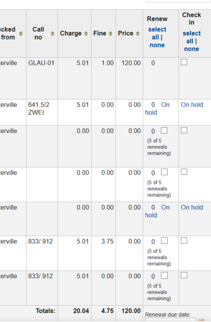 On the patron details and the check out tab at the bottom the amounts are not right aligned.