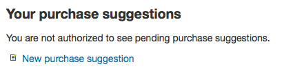 Created attachment 44333 [details] error When on the purchase suggestions page in the OPAC if there are no suggestions you get a warning "You are not authorized to see pending purchase suggestions." But once you add a suggestion that goes away.