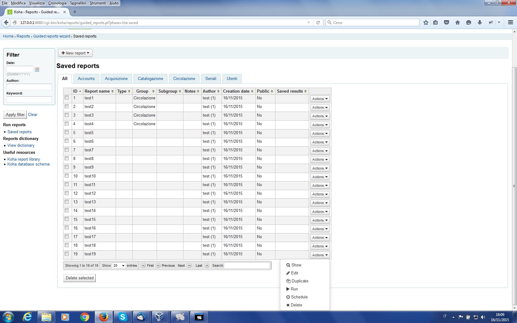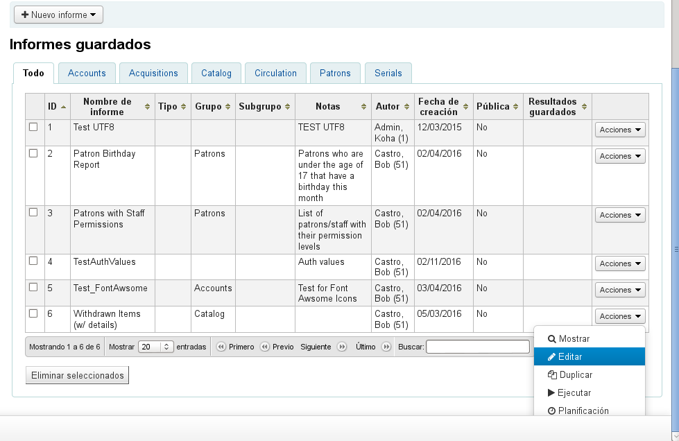 (In reply to Héctor Eduardo Castro Avalos from comment #12) > Created attachment 51162 [details] > drop-down-menu-spanish > > Hi Marc > > I don't see the option "Delete" -> "Borrar" in spanish Héctor, this patch has nothing to do with this button. I have tested with fr-FR and see the button, check that your user has the correct rights to delete a report (reports_create_reports).
