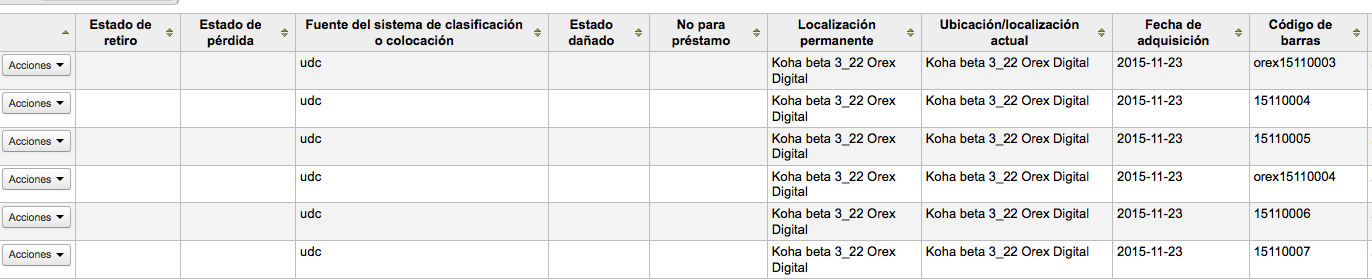 Hi Ruben, (In reply to Ruben Norori from comment #9) > I have the definitive solution: > First we must add two new procedures, functions, methods, which consult in > the database the registry homebranch. I didn't go deep into the problem you're trying to solve, but I suggest you don't introduce new subs, but use the current api instead. We have a (sort of) DAO class called Koha::Items that exposes a ->search method, which returns Koha::Item objects. So you can simply do something like this: use Koha::Items; my $item = Koha::Items->find( $barcode ); ->find gets an id column to find the row and create the object. 'barcode' is a unique key, so this works. Now you have a Koha::Item object, representing the item with the passed barcode. You can then use it like: my $homebranch = $item->homebranch; Hope it clarifies! This conversations are easier on the koha-devel list or on the IRC channel.