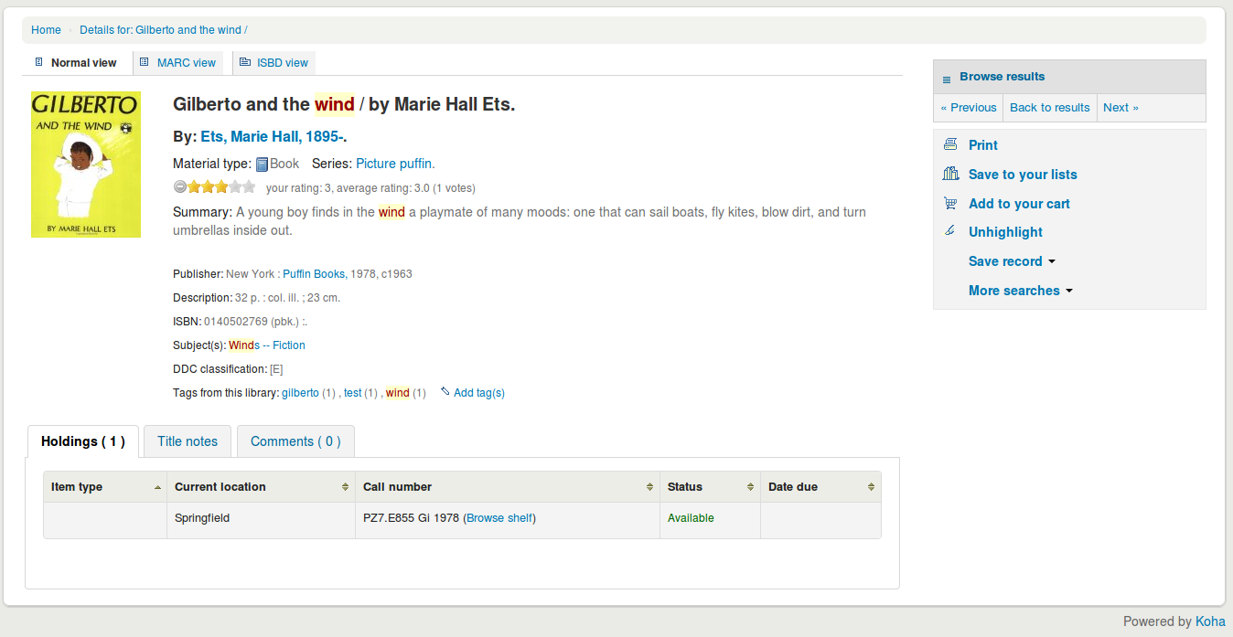 Hi Jen I think (IMHO) if you can divide in more divs the details, i.e., all data is contained in <div id="detail" class="span10"> and it could look much better if you separate in two or three divs depends on the data displayed. If record is too long -like motion pictures, dvds, etc- a white block is displayed below the cover image, so this way the second div can be aligned at left and so on. Here we must consider that two or more covers can be deployed. Also Koha notice this in Enhanced Content preferences in All section "NOTE: you can only choose one source of cover images from below, otherwise Koha will show the images from all sources selected." If OPACLocalCoverImages is set to 'Display' and there is not a cover image <div class="span2"> must be hide or display something like "No cover image available" in a box. I can not have access to Enhanced Content that require account and password like NoveList Select, If you have access, please paste a link for video like Kyle Hall did it in bug <http://bugs.koha-community.org/bugzilla3/show_bug.cgi?id=15079>. I don't know if QA Team have access to this. I've been tested this with syprefs GoogleJackets, OpenLibraryCovers, OPACAmazonCoverImages and works excellent, I will test it with more syprefs involved. Could be great if you extend this to UNIMARC and NORMARC environment. Regards