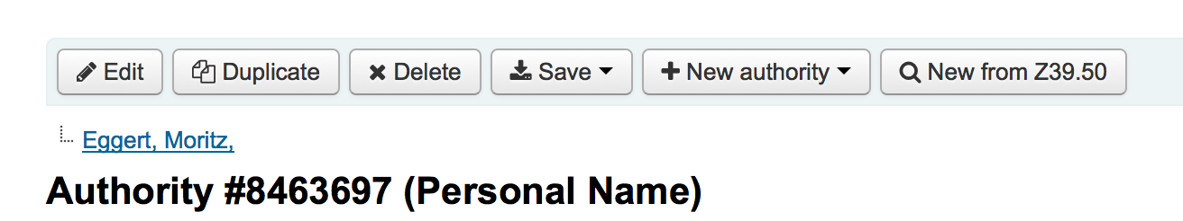 Created attachment 45468 [details] buttons At the top of authority records there is a 'new from z39.50' button. In cataloging this creates a new record. In authorities it replaces the record. The button is either broken or need to be relabeled as 'replace via z39.50' Nicole
