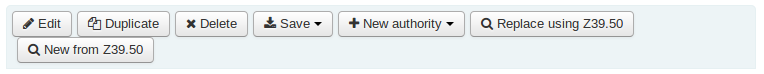 Created attachment 76606 [details] [review] Bug 15360: Incorrect or mislabeled behavior on Authorities "New from Z39.50" Button This patch makes a third stab at resolving this issue by reorganizing the authorities toolbar buttons to more closely match the bibliographic toolbar buttons: - "New from Z39.50" has been added to the "New authority" dropdown. - "Edit" is now a dropdown, like on the bibliographic detail page: - Edit record - Edit as new (duplicate) - Replace record via Z39.50/SRU - Delete record To test, apply the patch and go to the authorities module. Testing with existing Z39.50 authority sources configured: - On the authorities home page and the authorities search results page, the "New authority" menu should have a "New from Z39.50" link. - View the details for an authority record. The menus should appear as described above. Test each option. Remove all Z39.50 authority servers and test again. The "New from Z39.50" link should no longer appear. Signed-off-by: Charles Farmer <charles.farmer@inLibro.com> Signed-off-by: Katrin Fischer <katrin.fischer.83@web.de>
