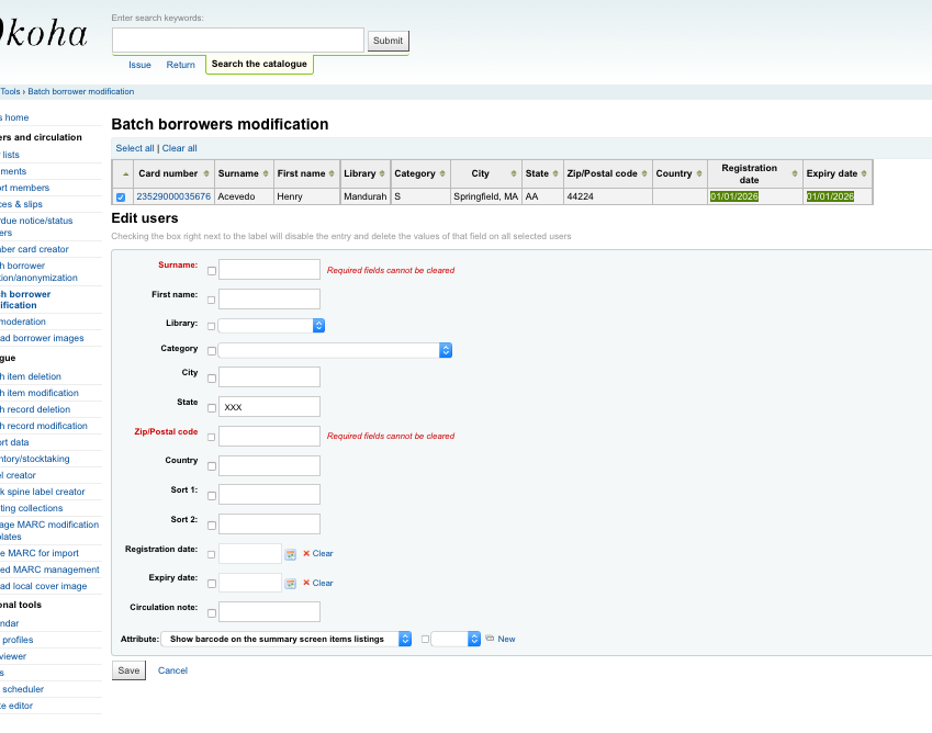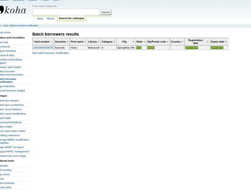 Created attachment 46930 [details] 'dateenrolled' and 'expirydate' fields have now been modified