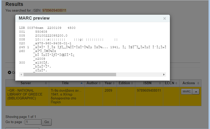 Created attachment 123175 [details] Search against National Library of Greece, example 1