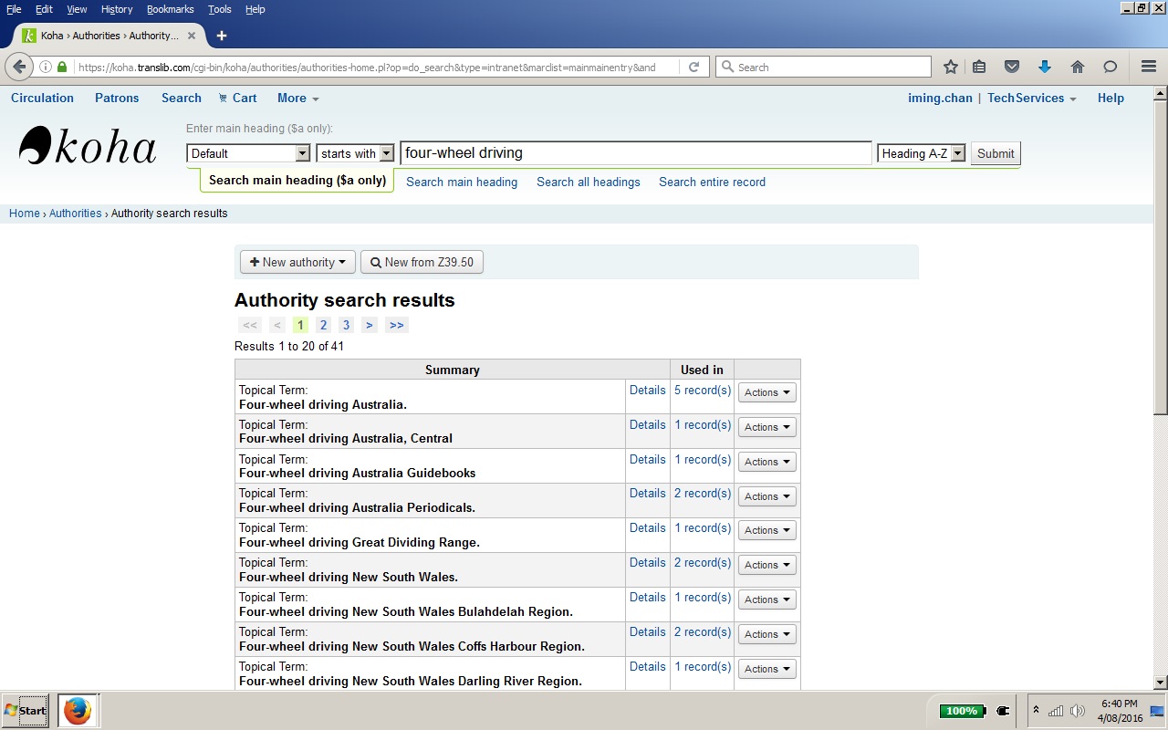 Created attachment 53988 [details] Record 1-20 (Page 1) Authority search result list page scrolling not working properly. The ">" (single right arrow) doesn't start from the end of previous page. For example, after displayed record 1-20. Click ">", you should get record 21-40, but, it actually showing record 2-21! See screen shots attached.