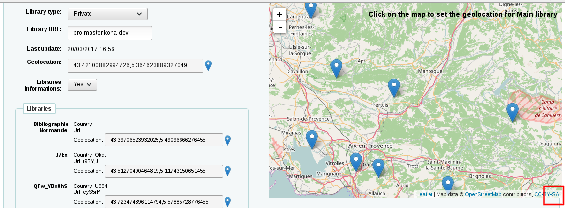 With this development Hea can collect the geolocations of the libraries in your installation and create a map. A new configuration page allows to configure easily what information is shared with the Koha community.