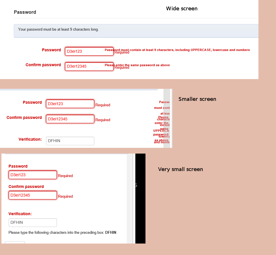 Created attachment 61237 [details] Screenshots of passwort hints on OPAC self registration Tested following plan in comment #1, works great. One small thing: Hints for wrong password do not display properly on OPAC self registration, see screenshots.
