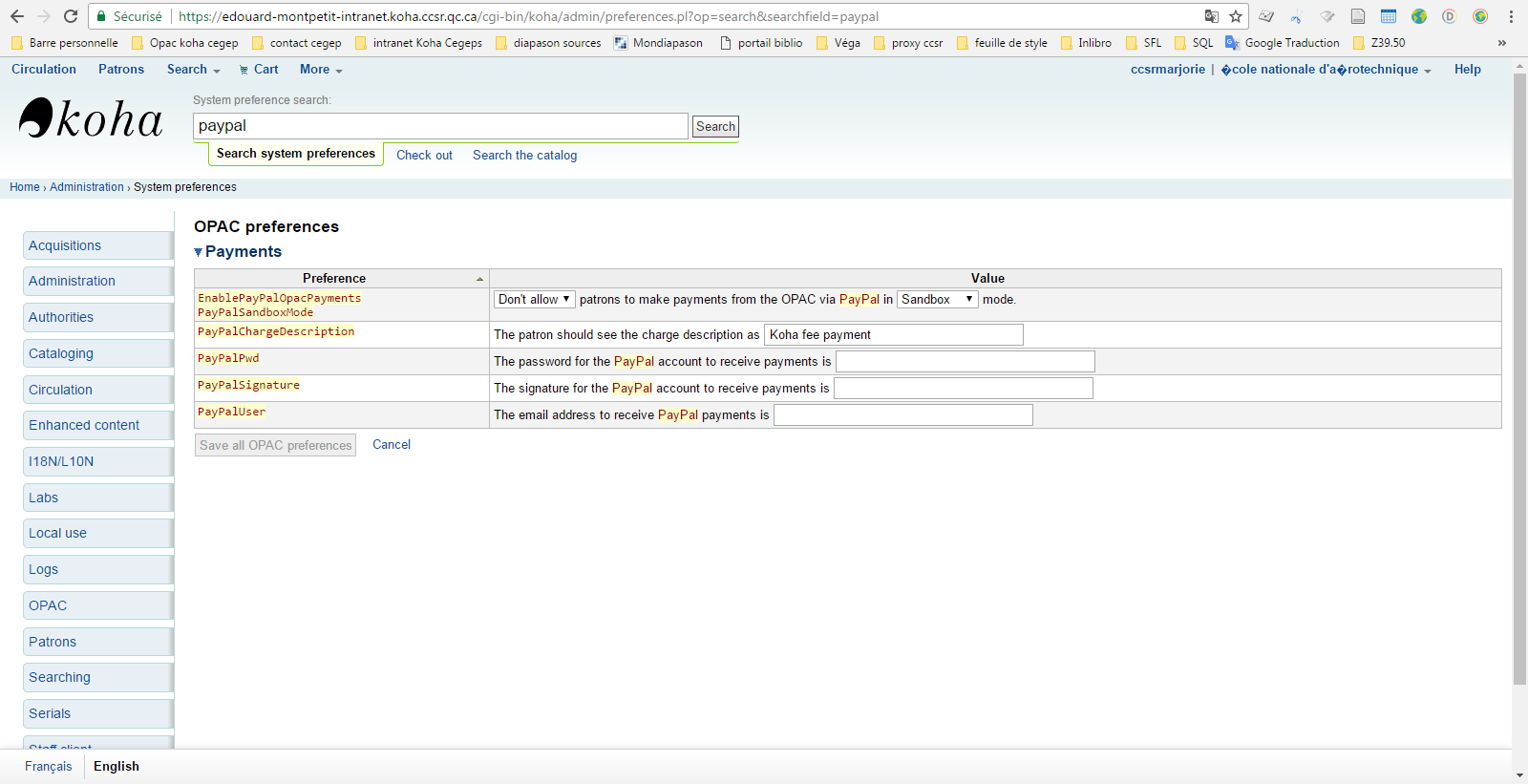 Created attachment 63690 [details] [review] Translated fr-CA opac.pref Version that hide 'paypal' results. (I just tested again before submitting)