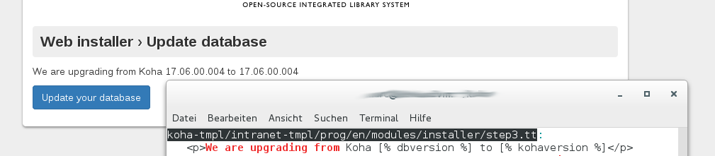 Created attachment 66836 [details] Screenshot upgrading message with identical version in web installer While upgrading, the web installer shows a message similar like "We are upgrading from Koha 17.06.00.004 to 17.06.00.004" Expected: Different version numbers for "from" and for "to". It seems that dbversion and kohaversion are the same in installer/step3.tt (see screenshot).