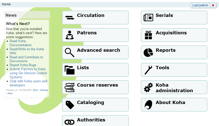 This new feature will add a link (on the top-left of the site) to the last patron consulted in the staff site. The feature currently uses cookies to save this information. When a staff site user accesses a patron record, the ID, name and card number of the patron will be saved in the cookie. (I'll add a patch and a test plan shortly)