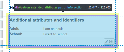 (In reply to Jonathan Druart from comment #5) > That's a lot of buttons! I've gotten feedback from librarians that the edit links were not visible enough. It's clearly an opinion, so we'll need to use our best judgement. > Would not it be better to move the "edit" button on the same line as the > header block ("Library use", "Alternate address", etc.)? The way I have it the edit button appears on the same line as the header if there is no content in the section, and at the bottom if there is. This is my preference, but I'm happy to be outvoted.