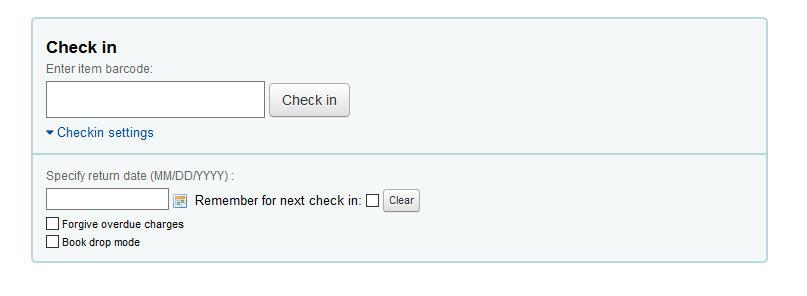 Created attachment 76136 [details] Screenshot of the revised checkin form I think it would be nice to make the checkin page look more like the checkout page, with a collapsed panel where settings like book drop mode can be hidden when not in use.
