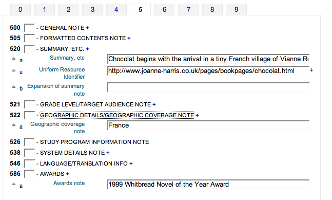 Looking at any record with a lot of 5xx fields should demonstrate the problem. They are shown in the Descriptions tab, but there is no way to tell from which 5xx they have been pulled.