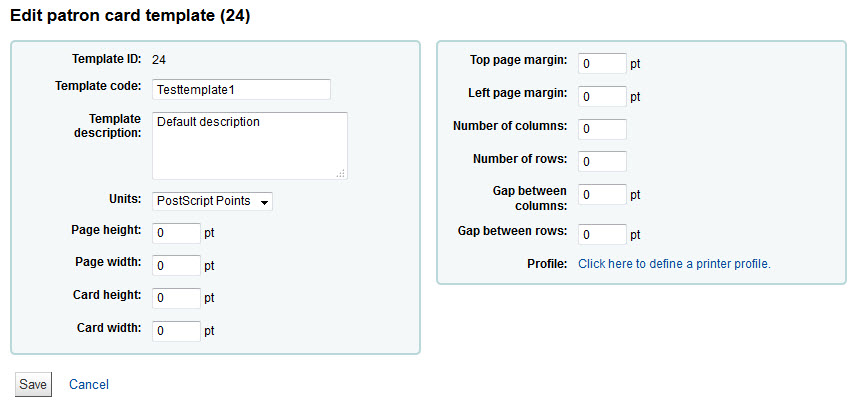(In reply to Katrin Fischer from comment #2) > Created attachment 77138 [details] > Patron card template > > We are aware that the values make no sense - it's what you get when you save > without changing anything on the form. The form doesn't require any fields, > so that could happen by accident. Likewise, the out put of: SELECT * FROM creator_templates WHERE template_id = <your id>\G