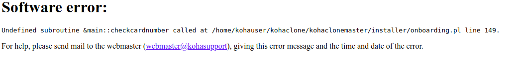 Created attachment 77205 [details] Undefined subroutine &main::checkcardnumber Undefined subroutine &main::checkcardnumber installer/onboarding.pl Getting error undefined subroutine while doing the master version of Koha installation