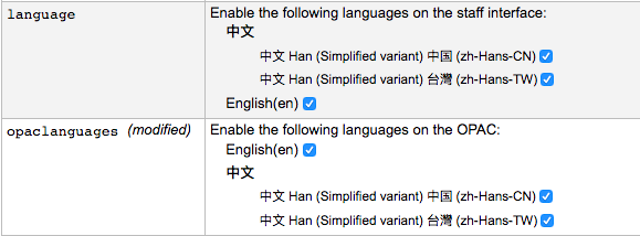 Created attachment 78838 [details] system_pref_misnamed The zh-Hans-TW file name for Traditional Chinese or Taiwanese written language is incorrectly displaying in the Staff and Opac as 中文 Han (Simplified variant) 台灣 (zh-Hans-TW). Simplified Chinese, "中文 Han (Simplified variant) 中国 (zh-Hans-CN)" is the official language of the People's Republic of China. The "中文 Han (Simplified variant)" is appearing in the language name because the file is titled "zh-Hans-TW" when it should be titled "zh-Hant-TW". The database is set up to use "Hant" but it just incorrectly named.
