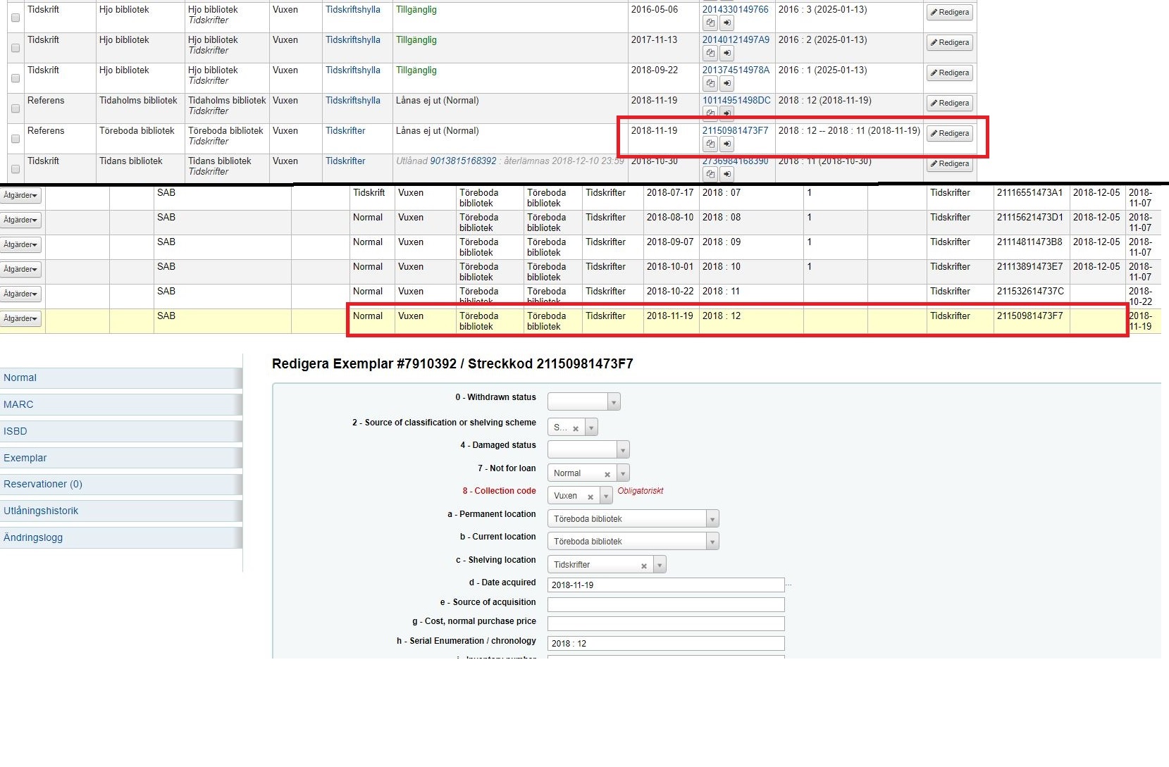You might have to edit the serial issue as well as the item.