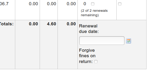 Created attachment 84464 [details] Renew options at the bottom of checkouts table For some reason in the checkouts table in the staff patron account, the labels for renewing at the bottom of the table are quite squashed while the input box below is much wider (see screenshot). I think it would be nice to improve this, also to aid longer translations (German being famous for long words wrapping not nicely).