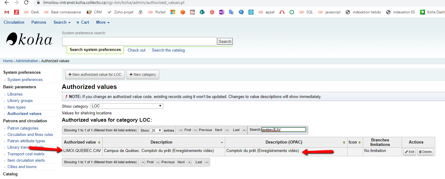 (In reply to Katrin Fischer from comment #2) > Alexandre, if the problem is that the shown location might belong to the > home library instead of the current library than I am not sure how we can > solve this. > > There is no way to tell if the location applies to the current or the home > library. > > Examples that come to mind: > It could also be "CART" or "PROC" which are correct independent from the > library setting. Or it might be part of course reserves and the current > library has set the location to a specific "course reserves" location. > > What solution would you prefer? Hi Katrin, Alexandre no longer works for our company now. What he wanted to mention in this ticket is that the location of an item in the mail was displayed under the code of the authorized value and not by its opac description. Example of the screenshot "no_home_library" *Campus de Québec LIMOI.QUEBEC.CAV (DVD C154) should rather be written *Campus de Québec Comptoir du prêt (Enregistrements vidéo) (DVD C154) Is it clearer for you? Regards, Marjorie