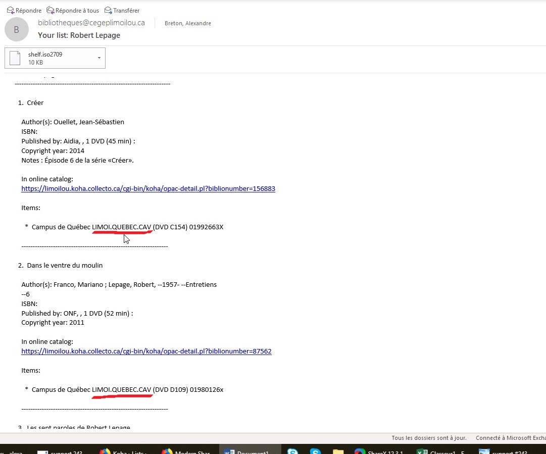 Created attachment 85183 [details] no home library The lists sent by mail doesn’t show correctly the home library of items. The mail shows the current location and that’s all. Rather than this, the mail shows an authorized value. The home library isn’t shown which is useful for the students to guide them where the books are. 1) Go to lists 2) Choose a list and send it at one of your emails and close the window 3) In the sent mail, watch the infos below the “Item” mention, they are wrong (see picture underlined in red) note that the home library isn't following the current location of the book. We have the authorized value of the item shown there. Best regards, Alexandre