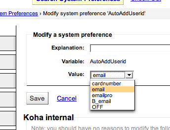 Thanks for your quick reply - yes that makes sense and will improve the user records, preventing the email address appearing in multiple places. (e.g. email, userId etc) It also helps to reduce the number of fields required to create a user record - e.g. at the desk while a new patron is waiting to checkout a book. Jeremy