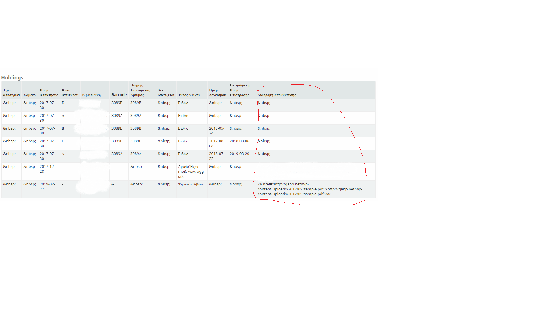 Hi, as the screenshot is in Greek I am guessing that you put in HTML into the OPAC note? We allow HTML again in this field in recent versions (see bug 23194 for more information). Maybe this already fixes your issue? There is also a URI field in items that can be used for links. *** This bug has been marked as a duplicate of bug 23194 ***