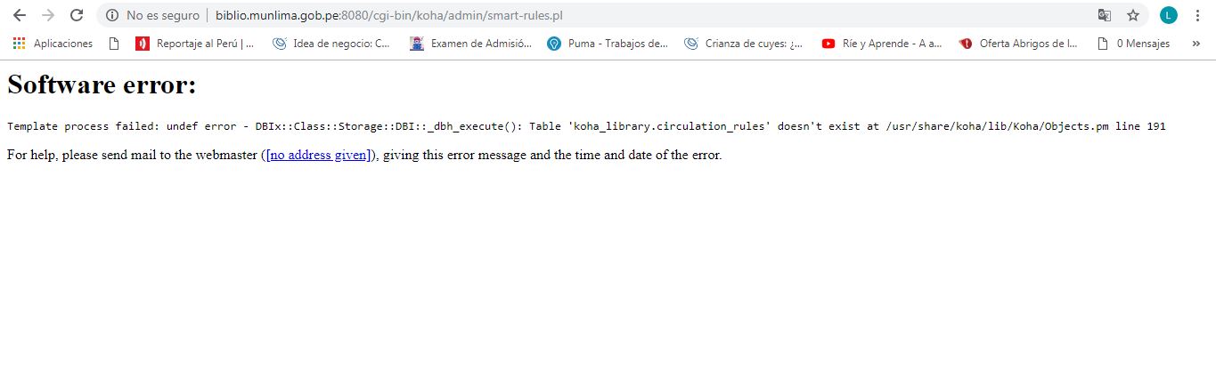 Created attachment 86692 [details] Software error In the update of koha 16.11 to the stable version 18.11 of my server, the circulation rules table does not exist and it does not allow me to manage the circulation rules of the libraries or generate book reservations.