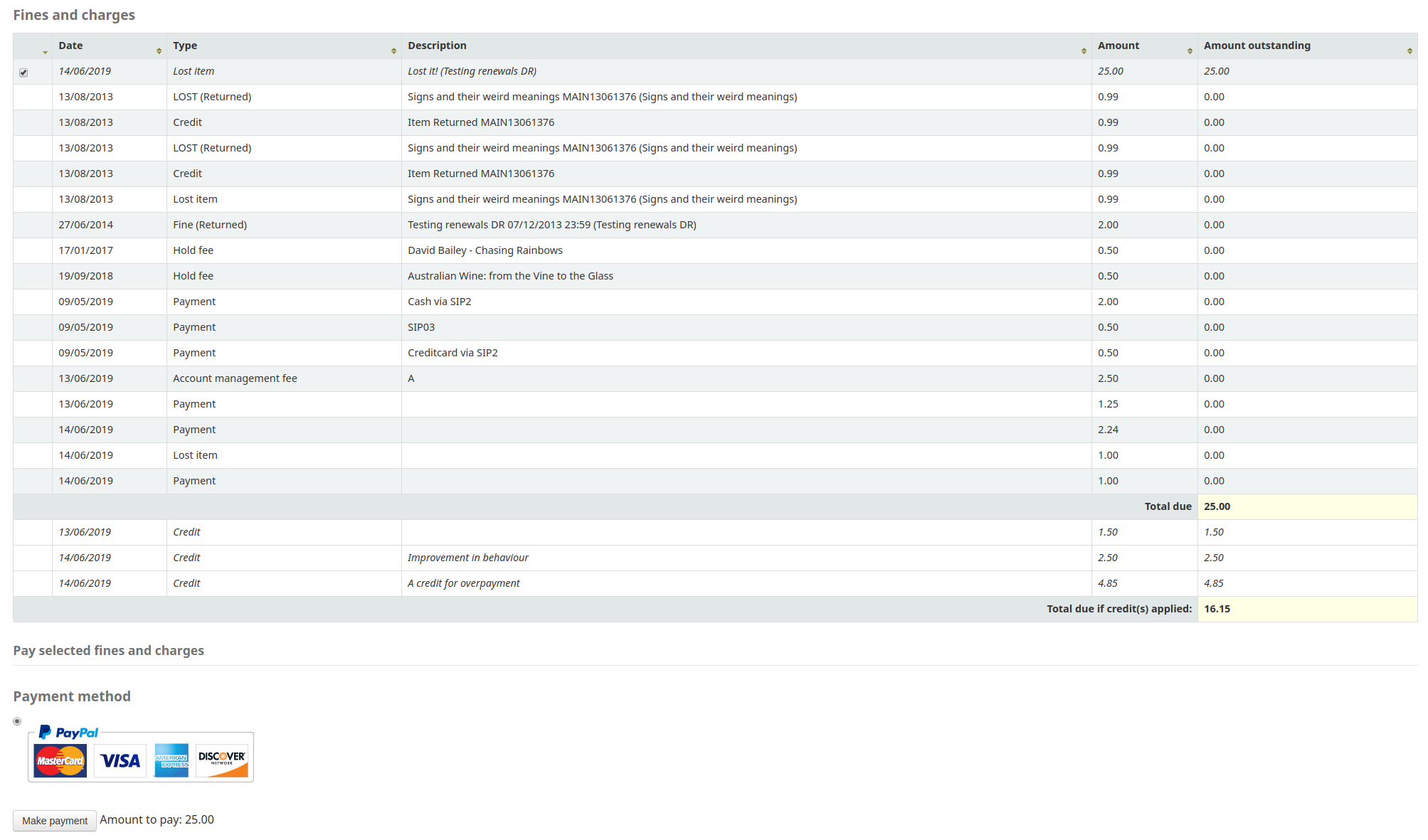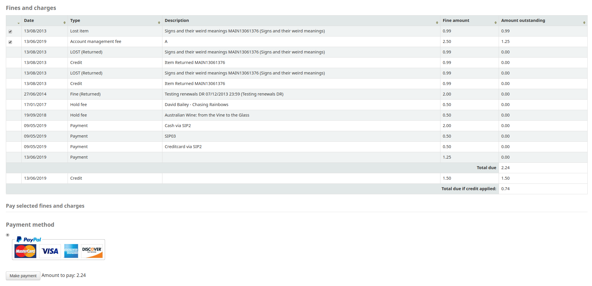 Created attachment 90616 [details] [review] Bug 23115: Tweak display of totals on 'Fines and charges' page This patch tweaks the display of totals on the OPAC 'Fines and charges' page to clarify between the totals before and after applying credits. Test Plan: 1) Add some debts and credits to a patrons account 2) Look at the 'Fines and charges' page before applying the patch 3) Look at the 'Fines and charges' page after applying the patch 4) Varify the new layout is an improvment or not Signed-off-by: Martin Renvoize <martin.renvoize@ptfs-europe.com> Signed-off-by: Nadine Pierre <nadine.pierre@inLibro.com>