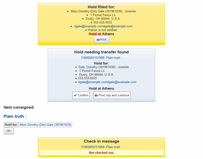 Created attachment 92025 [details] Checking a hold for another library with HoldsAutoFill enabled If the HoldsAutoFill system preference is enabled, the hold confirmation dialogs on the check-in page are badly constructed, resulting in duplicate information and inconsistent displays. See attached screenshot