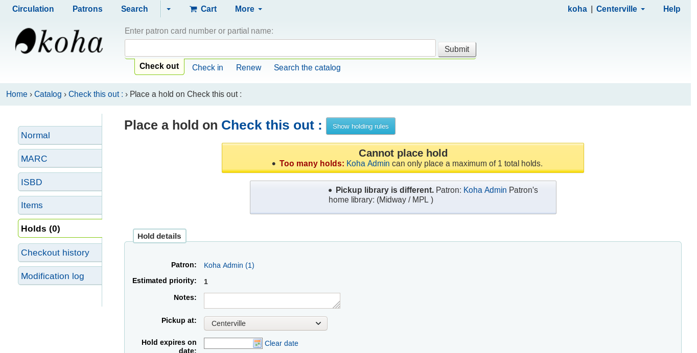 Created attachment 178888 [details] Screenshot: Multiple items, holds_per_record ok, holds_per_day ok, reservesallowed blocking