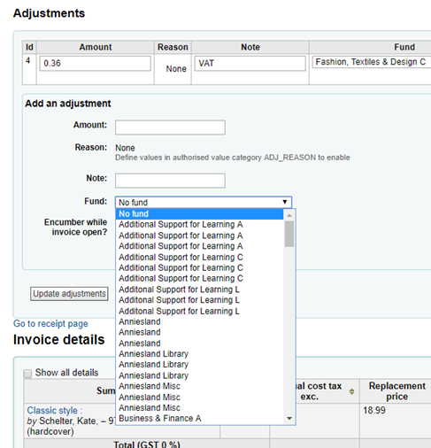 Created attachment 97354 [details] [review] Bug 23929 : Invoice adjustments should filter inactive funds Test plan : Go to details of an invoice. In the adjustments block, click on Add an adjustment and click again on Fund select list. If you have been using Koha for some years, you risk to see many funds with same name listed successively (inactive funds from past years). Install the patch. click again the Fund select list in ajustment block : now, you have only active funds. Olivier Crouzet