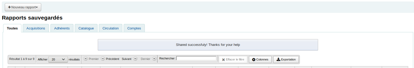 Created attachment 95748 [details] English Success message in fr-CA page When sharing a report with Mana KB, there is a message that says "Shared successfuly! (sic) Thanks for your help" That string is untranslatable. It is nowhere in the po files. I wonder if that has to do with the URL that I get http://v1905-intranet/cgi-bin/koha/reports/guided_reports.pl?phase=Use%20saved&manamsg=Shared%20successfuly!%20Thanks%20for%20your%20help If the message is in the URL, maybe it's just not in the tt?