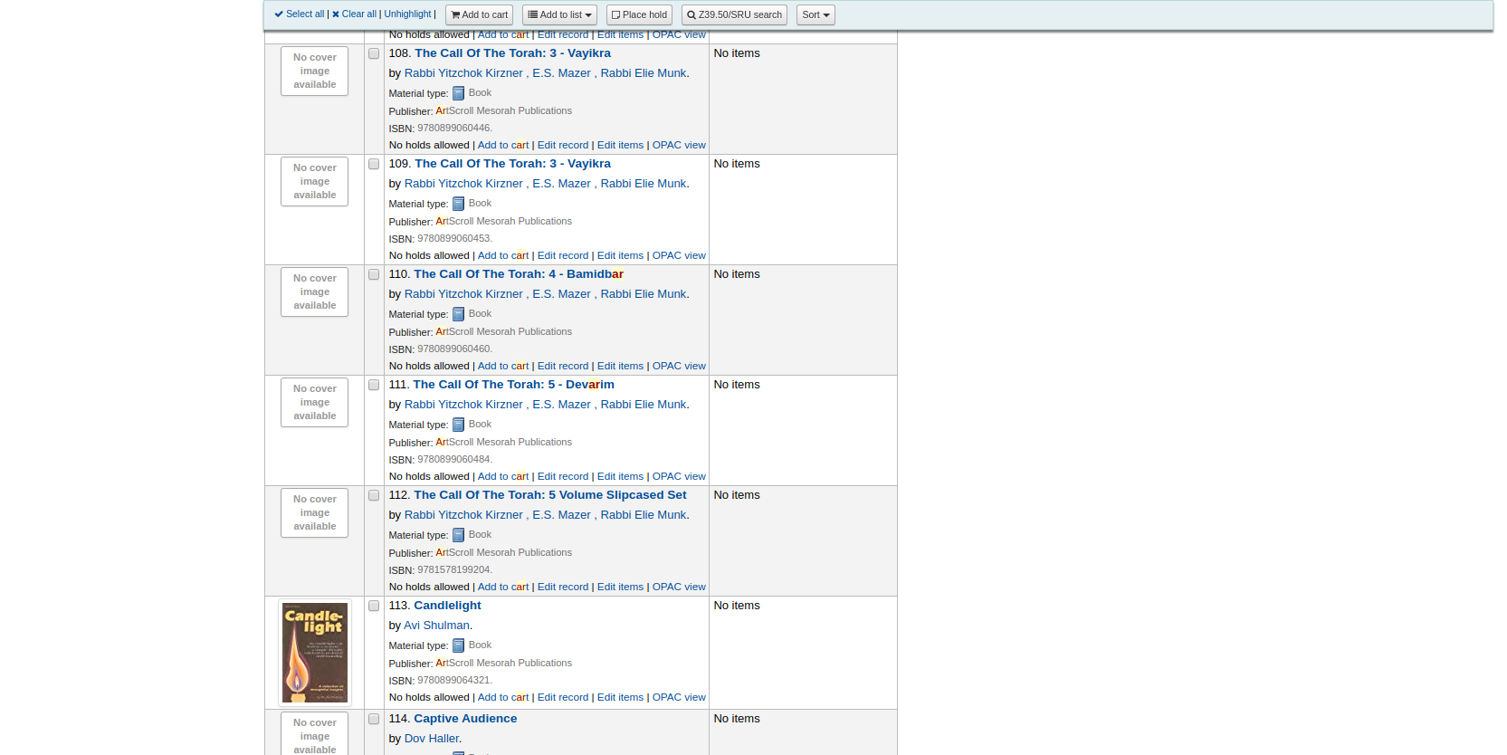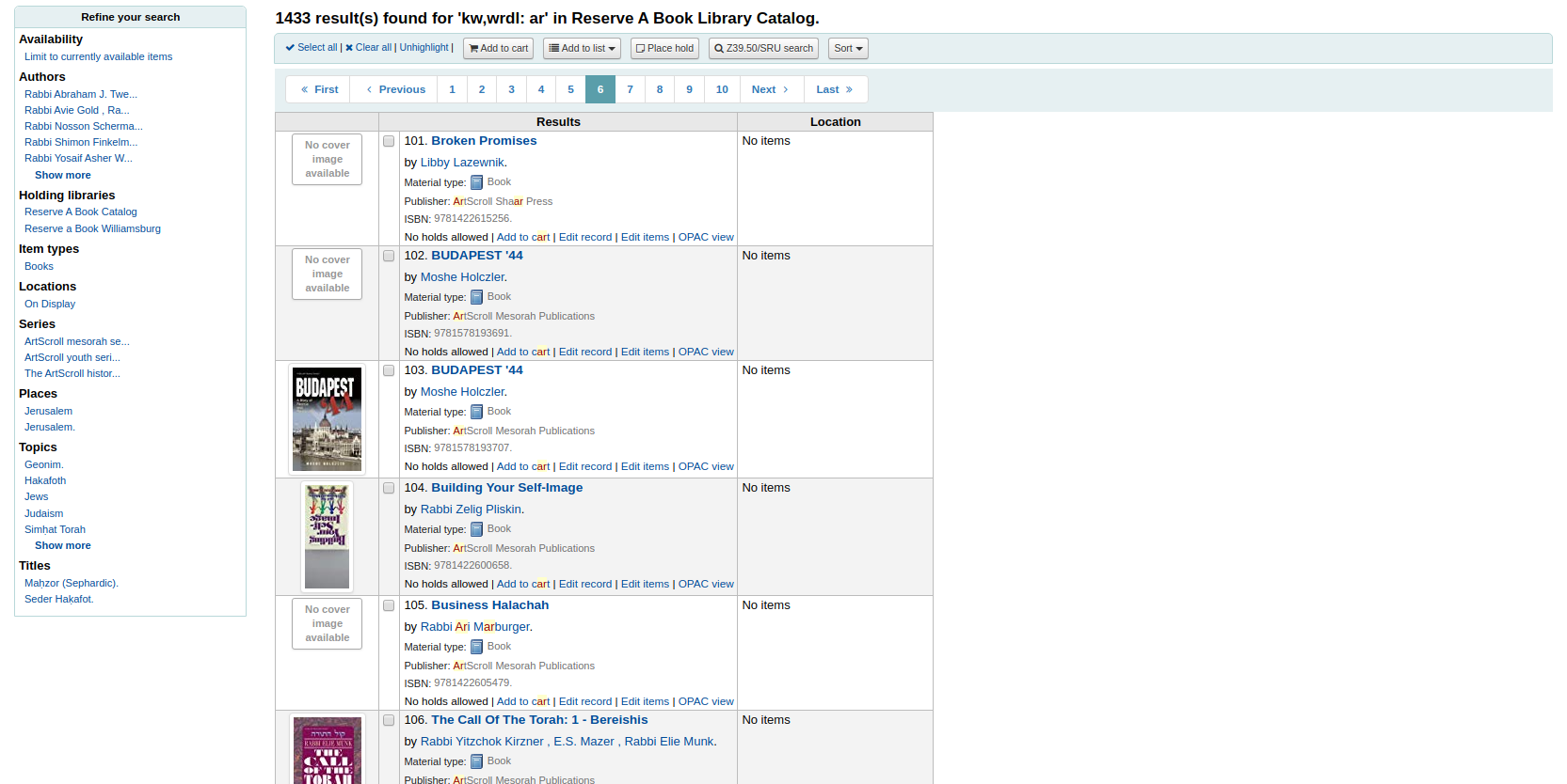 Hi Katrin, The same thing is also in regard to sorting by Title. http://bp.reserveabooklibrary.com/cgi-bin/koha/catalogue/search.pl?idx=kw&q=ar&offset=100&sort_by=title_az Here you can see After B comes T Then C ... Can we increase that number of sorting for zebra?