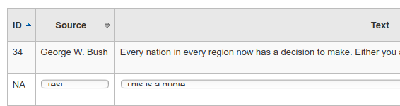Created attachment 99063 [details] Bug 24640: Screenshot of input field on Firefox Notes (using docker-testing-docker): - I don't see the error mentioned, but the quote is not added to the list - Seems like you couldn't add or edit a quote from at least 18.11.x - The styling is all wonky from at least 19.11.x on Firefox (very narrow height for the input boxes when adding or editing => Google Chrome or Chromium is okay)(see screenshot attachment) - happy to add a new bug for this Updated test plan: 1) Try and add a quote - when you press enter nothing happens and it is n0t added to the list of quotes 2) Apply the patch 3) Run the database update (updatedatabase on koha-testing-docker or perl installer/data/mysql/updatedatabase.pl) 4) Try and add a quote - it should now be added to the list 5) Sign off!