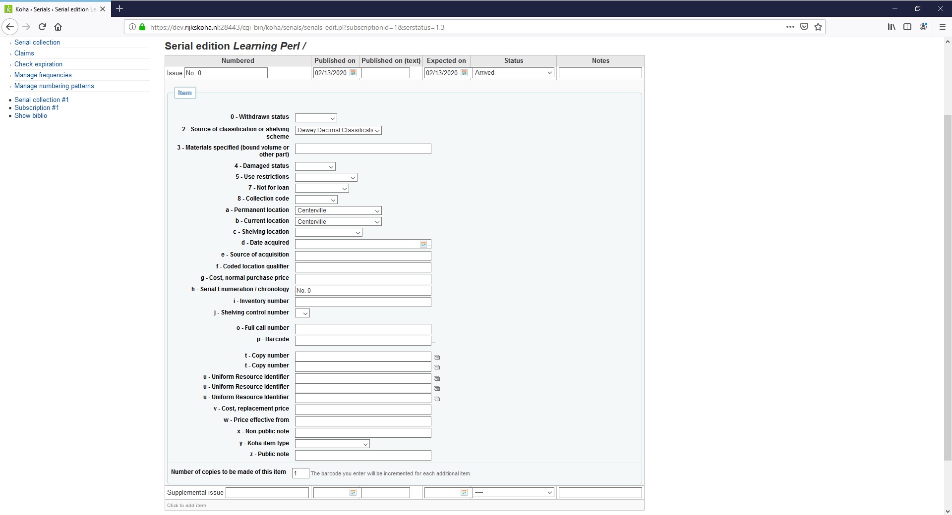 (In reply to Owen Leonard from comment #6) > Marcel I don't think it's a styling issue. I think serials-edit.tt needs the > same correction you made to additem.tt and batchMod-edit.tt. Thanks. You are right.