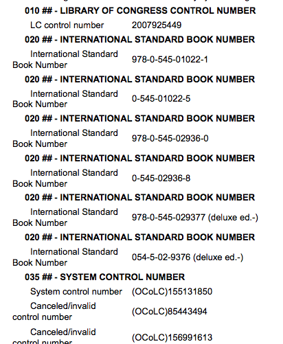 ---- Reported by nengard@gmail.com 2008-09-08 16:26:54 ---- Why is the template putting hyphens into the 020 on the expanded marc view: /cgi-bin/koha/opac-MARCdetail.pl?biblionumber=31129 there are no hyphens in the marc record ---- Additional Comments From gmcharlt@gmail.com 2008-09-16 20:43:50 ---- Patch pushed to HEAD. Please test and close. ---- Additional Comments From nengard@gmail.com 2008-09-17 04:12:43 ---- Nope - not fixed after upgrading: http://opac-nce.dev.kohalibrary.com/cgi-bin/koha/opac-MARCdetail.pl?biblionumber=721 ---- Additional Comments From oleonard@myacpl.org 2008-09-17 08:16:56 ---- I managed to fix it on the staff side but not the OPAC. Another patch has been submitted. ---- Additional Comments From nengard@gmail.com 2008-10-20 04:53:47 ---- Where are we with fixing this on the OPAC - I just retested and have attached a screenshot - it's still an issue. ---- Additional Comments From nengard@gmail.com 2008-10-20 04:54:08 ---- Created an attachment hyphens ---- Additional Comments From oleonard@myacpl.org 2008-10-20 05:28:36 ---- I submitted a patch recently, but it hasn't been approved. ---- Additional Comments From gmcharlt@gmail.com 2008-10-22 12:55:35 ---- OPAC patch pushed. Please test and close. --- Bug imported by chris@bigballofwax.co.nz 2010-05-21 00:53 UTC --- This bug was previously known as _bug_ 2592 at http://bugs.koha.org/cgi-bin/bugzilla3/show_bug.cgi?id=2592 Imported an attachment (id=749) Actual time not defined. Setting to 0.0 The original assignee of this bug does not have an account here. Reassigning to the default assignee for the component, chris@bigballofwax.co.nz. Previous assignee was jmf@liblime.com. CC member rch@liblime.com does not have an account here The original submitter of attachment 749 [details] is unknown. Reassigning to the person who moved it here: chris@bigballofwax.co.nz.
