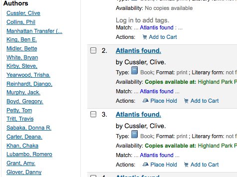---- Reported by nengard@gmail.com 2008-09-16 11:27:25 ---- Facets should be alphabetical - right now they appear random. If they can't be sorted alphabetically can they have a number hits in parens next to them - ex. (12) so that the order appears to make sense? ---- Additional Comments From nengard@gmail.com 2008-09-16 11:27:43 ---- Created an attachment facets ---- Additional Comments From oleonard@myacpl.org 2008-09-16 11:39:05 ---- Facets used to show a count, but at the time the counts were accurate only with regard to the results on the screen, not the whole result set. If I recall correctly, getting a count for the whole result set was an issue. ---- Additional Comments From nengard@gmail.com 2008-09-16 11:43:27 ---- Okay - then alpha order - right now it's hard to find the author you're looking for an the librarians are confused as to what the order is. ---- Additional Comments From jwagner@ptfs.com 2009-09-04 13:29:57 ---- Updating this after discussion on the IRC today. It seems that the contents of each facet category (Author, Topic, whatever) display in order of frequency from the entire hitlist -- the most frequently used subject will be first. However, the count display (which is presently turned off) only applies to the _current page_ of the results list, which is misleading and fairly useless. I think that maybe a couple of things are needed here. Either fix the count so that it displays and applies to the whole results list, or give the site the ability to sort the contents of each facet alphabetically (so that users can find what they may be looking for more easily), or at least note on the screen that the lists are in order by most heavily used first. ---- Additional Comments From paul.poulain@biblibre.com 2009-09-04 15:13:56 ---- unless i'm missing something : - the facets are calculated by Koha. Calculating them on all the result set would result in very very poor performances. Thus, the calculation on the screen part only. - zebra now contains some features to build facets, but no one ever took time to use them in koha afaik --- Bug imported by chris@bigballofwax.co.nz 2010-05-21 00:53 UTC --- This bug was previously known as _bug_ 2614 at http://bugs.koha.org/cgi-bin/bugzilla3/show_bug.cgi?id=2614 Imported an attachment (id=759) Actual time not defined. Setting to 0.0 CC member bchurch@ptfs.com does not have an account here CC member jwagner@ptfs.com does not have an account here The original submitter of attachment 759 [details] is unknown. Reassigning to the person who moved it here: chris@bigballofwax.co.nz.