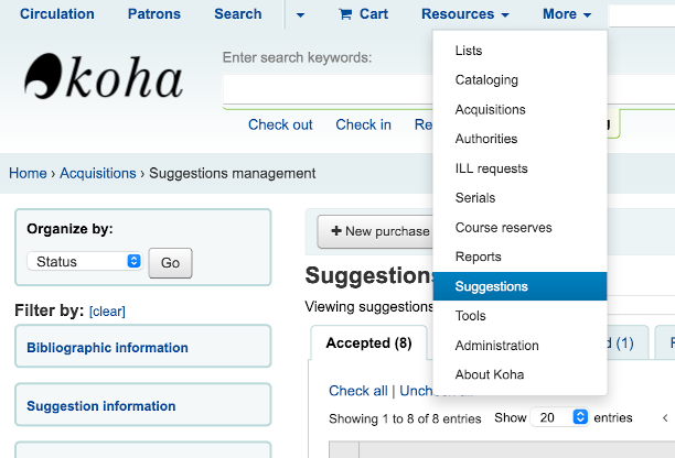 We have library staff who may need to submit purchase suggestions to our acquisitions team, but do not need access to the rest of the acquisitions module. We do not have purchase suggestions turned on on the OPAC. We have permissions set so that they can manage purchase suggestions, but do not have any acquisitions module permissions set. Unless I'm mistaken, the only route to access the purchase suggestion form through the staff client is through the acquisitions module, but if these users have no acquisitions permissions, they do not have the acquisitions page link available on the Koha homepage. Can I propose that a link to the purchase suggestion form be added somewhere else on the staff client homepage, so that users with this particular set of permissions can access the form without needing to have additional acquisitions permissions?