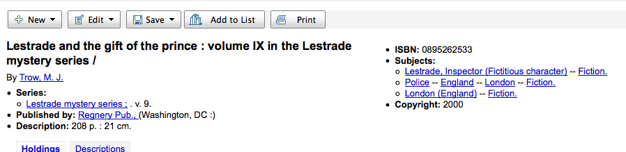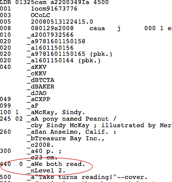---- Reported by nengard@gmail.com 2008-10-21 07:36:55 ---- See the attached images. In short, the 440n is showing on the staff side in a funny place, but the 440a isn't showing at all on the staff side. One the OPAC the 440a & n are showing, but there is no space in between them so they're smooched together. ---- Additional Comments From nengard@gmail.com 2008-10-21 07:37:14 ---- Created an attachment marc record ---- Additional Comments From nengard@gmail.com 2008-10-21 07:37:29 ---- Created an attachment staff side ---- Additional Comments From nengard@gmail.com 2008-10-21 07:37:45 ---- Created an attachment opac ---- Additional Comments From oleonard@myacpl.org 2008-10-21 09:35:33 ---- I submitted a patch to address some of these issues but I see I didn't address your request for full output of series info on the staff side. My patch only corrects the formatting of the existing display. I'm working on another patch to address the remaining issues. ---- Additional Comments From nengard@gmail.com 2008-11-17 12:15:17 ---- This is also an issue with 440v ---- Additional Comments From gmcharlt@gmail.com 2008-12-31 08:53:02 ---- Owen's patch pushed to HEAD. As he noted, doesn't fix all problems reported in the bug. ---- Additional Comments From oleonard@myacpl.org 2009-04-30 16:37:36 ---- Created an attachment Proposed fix ---- Additional Comments From gmcharlt@gmail.com 2009-05-08 17:24:48 ---- Pushed Owen's patch - please test and close. ---- Additional Comments From nengard@gmail.com 2009-05-28 15:07:21 ---- This fixes the issue on the staff side partially - but on the OPAC with XSLT on there is no series information displaying - see the new screenshots. ---- Additional Comments From nengard@gmail.com 2009-05-28 15:07:49 ---- Created an attachment updated staff side ---- Additional Comments From nengard@gmail.com 2009-05-28 15:08:11 ---- Created an attachment updated OPAC side ---- Additional Comments From adrea@moablibrary.org 2009-06-05 18:12:00 ---- Our library would very much like to see series information (name of series and volume in series) displaying consistently in both the OPAC and staff client - regardless of whether or not you have your OPAC XSLT Stylesheets turned on. We are looking forward to using Owen's patch which will give us the series title in the staff client. Since, this issue is being worked on I have some further information which needs to be taken into consideration. Beginning on Oct. 24th 2008, the Library of Congress, made the following described change to how series information is recorded in MARC records… http://www.loc.gov/catdir/pcc/Field440.pdf Currently, in our KOHA OPAC (version 3.01.00.014), series information is only being pulled from the 440 field. All the new records that we are receiving from our vendors have series information in the 490 or 490/800 field. Is this already being taken into account in the patches that have been submitted - so that series information in the 490 or 490/800 field displays correctly? If possible the OPAC could first try to pull information from the 490 field (subfield a,v) and if those were blank – pull info from the 440 field (subfields a,v). I spoke to the cataloging expert at our State Library and she said that many libraries are leaving their old records with the 440 tag and using the 490 tag from now on – so it sounds like the majority of libraries are going to have data in both of these fields depending on how old the record is – but in order for KOHA to stay up to date with current cataloging rules the 490 and 490/800 fields need to be pulled and displayed in the OPAC. In order for the fix to be comprehensive, the fix would need to be applied to both the OPAC search results page and the OPAC details page (and the Staff Client search results and the materials "normal" tab). And the fix would need to be applied when you have the XSLT stylesheet turned ON or OFF for both these pages. Currently our library operates with the OPAC search results XSLT stylesheet turned off, and the OPAC details page XSLT stylesheet turned on. ---- Additional Comments From rch@liblime.com 2009-06-12 20:27:42 ---- The current xsl sheet will display both 440s and 490s. However, 490's are filtered on indicator1=0 : <xsl:for-each select="marc:datafield[@tag=490][@ind1=0]"> And no attempt is made to pull data from 800-830 . If we don't parse the 800-830 fields, then the @ind1=0 filter should be dropped, imo. As an aside, this exposes a bug in the xsl processing: If you have a 490 with two ‡a's, then the ind1=0 filter fails, and the 490 is displayed even if @ind1=1. That will become relevant if we process the 800-830, but not if we just remove the ind1 filter. Removing patch-sent. --- Bug imported by chris@bigballofwax.co.nz 2010-05-21 00:54 UTC --- This bug was previously known as _bug_ 2704 at http://bugs.koha.org/cgi-bin/bugzilla3/show_bug.cgi?id=2704 Imported an attachment (id=802) Imported an attachment (id=803) Imported an attachment (id=804) Imported an attachment (id=805) Imported an attachment (id=806) Imported an attachment (id=807) Actual time not defined. Setting to 0.0 CC member adrea@moablibrary.org does not have an account here CC member bchurch@ptfs.com does not have an account here CC member jmf@liblime.com does not have an account here CC member kdr@ckls.org does not have an account here CC member rch@liblime.com does not have an account here The original submitter of attachment 802 [details] is unknown. Reassigning to the person who moved it here: chris@bigballofwax.co.nz. The original submitter of attachment 803 [details] is unknown. Reassigning to the person who moved it here: chris@bigballofwax.co.nz. The original submitter of attachment 804 [details] is unknown. Reassigning to the person who moved it here: chris@bigballofwax.co.nz. The original submitter of attachment 805 [details] [review] is unknown. Reassigning to the person who moved it here: chris@bigballofwax.co.nz. The original submitter of attachment 806