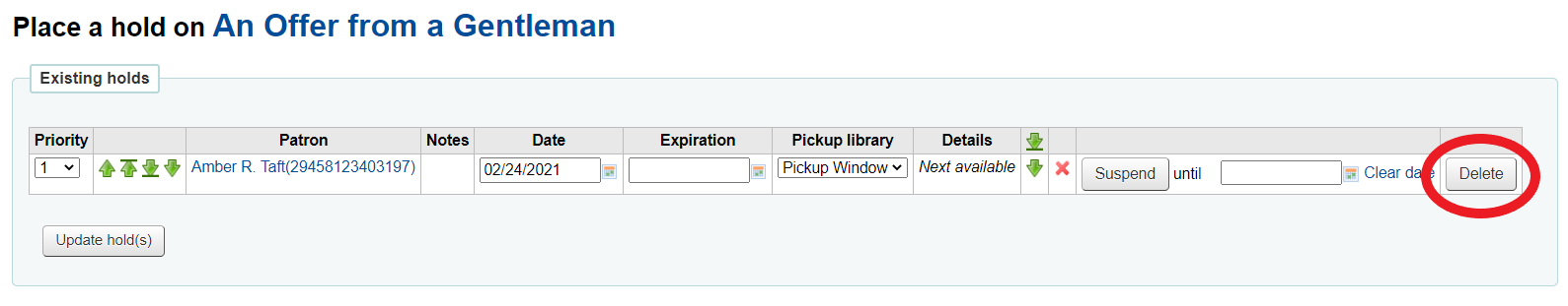 Created attachment 118080 [details] Example of holds queue with delete button added