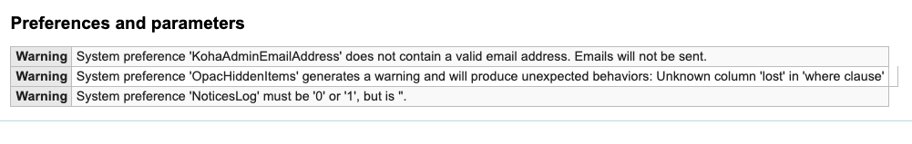 Created attachment 119513 [details] [review] Bug 28125: Display a warning on the about page for OPACHiddenItems is needed If OPACHiddenItems is containing badly construct it will lead to inconsistent behaviours. For instance the holds view will not display any items, when the detail page will display all of them (because we are not using the same code, we are in transition to merge it). This patch suggests to add a warning to the about page in case the query generated by Koha::Items->filter_by_visible_in_opac produces a warning