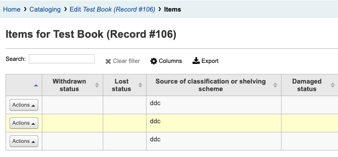 Created attachment 120092 [details] Look of the table with highlighted row Highlighting is broken at the /cgi-bin/koha/cataloguing/additem.pl?biblionumber=XXXX Every odd row of the table doesn't get highlighted with the yellow color when you try to edit it, meanwhile every even row does get highlighted as supposed to. How to reproduce: 1) Head over to the /cgi-bin/koha/cataloguing/additem.pl?biblionumber=XXXX, where XXXX is id of some bilbio record that has more than one biblio item. 2) Press the "Action" button of the first (or any other odd numbered) biblion item, and from the dropdown menu select "edit" option. 3) Notice that it doesn't highlight it with yellow color. 4) Now do the same but with second biblio item (or any even numbered item). 5) Notice that it highlights it with the yellow color.